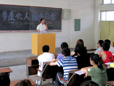 刘建山先生在企业从事营销工作11年,讲座中,他围绕“尊重他人,服务顾客”的主题,针对学生的专业情况,通过大量市场经营实战案例,与同学们分享了自己多年在营销行业的经验,特别是他在河北新世纪药业有限公司任职期间,从一名普通的销售人员,通过不懈努力和学习,一直提升到经理的历程,为同学们摆正就业心态,更好的走出社会、适应社会提供了一个生动、形象的案例。同学们听得聚精会神,精彩处掌声热烈,使教室洋溢着浓厚的学习与交流氛围。在互动问答环节中,同学们踊跃提问,刘经理精彩解答。